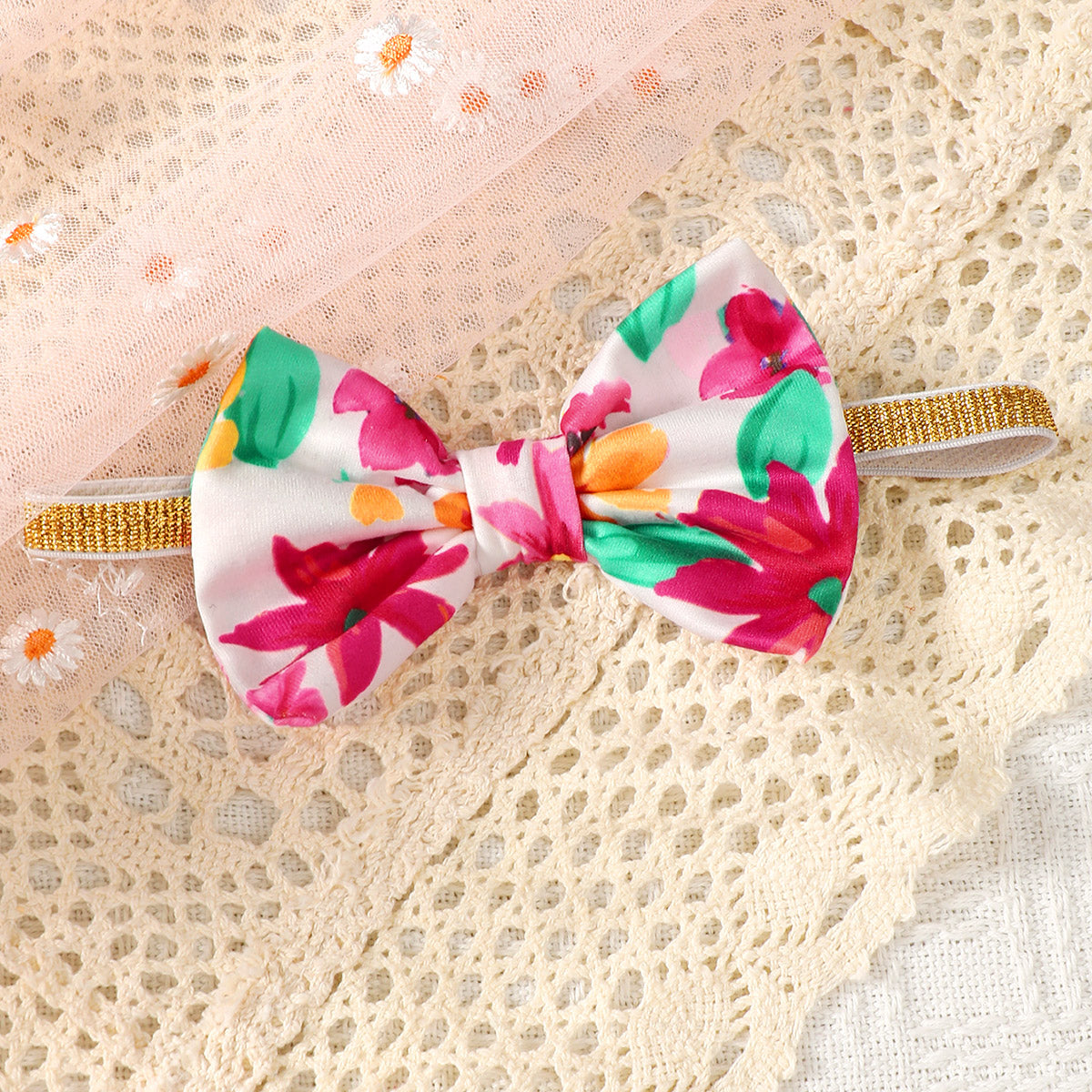 Bow Ruffled Round Neck Bodysuit and Printed Pants Set
