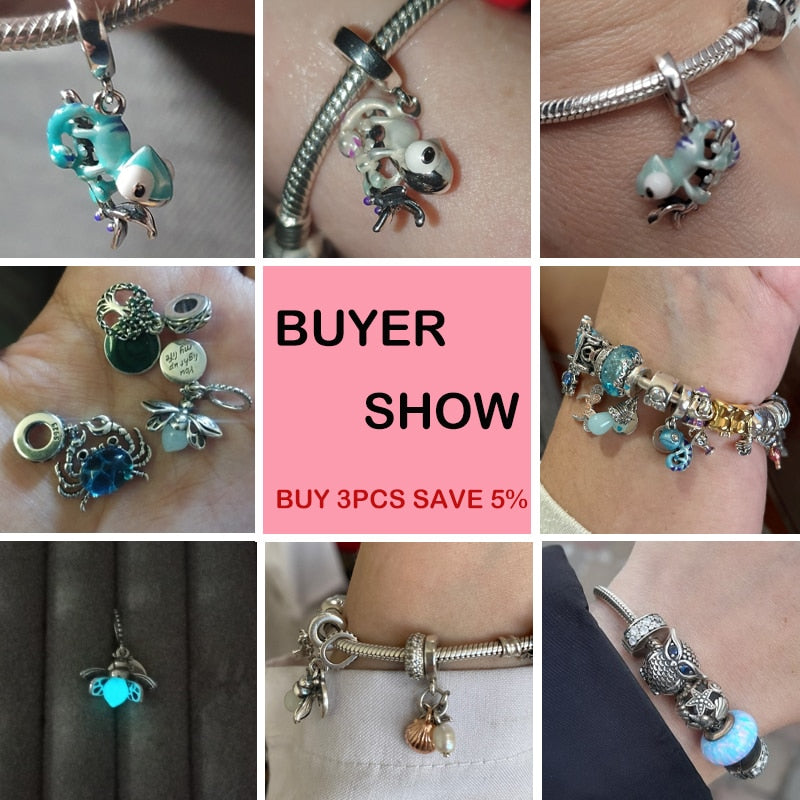Fit Pandora 925 Original Bracelet Chameleon Luminous Firefly Butterfly Silver Charms Beads For DIY Christmas Jewelry Gift Making