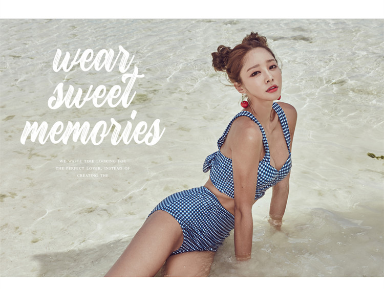 Girl Split Retro Plaid HighWaist Lace Bow Sexy Bikini SwimsuitWomen