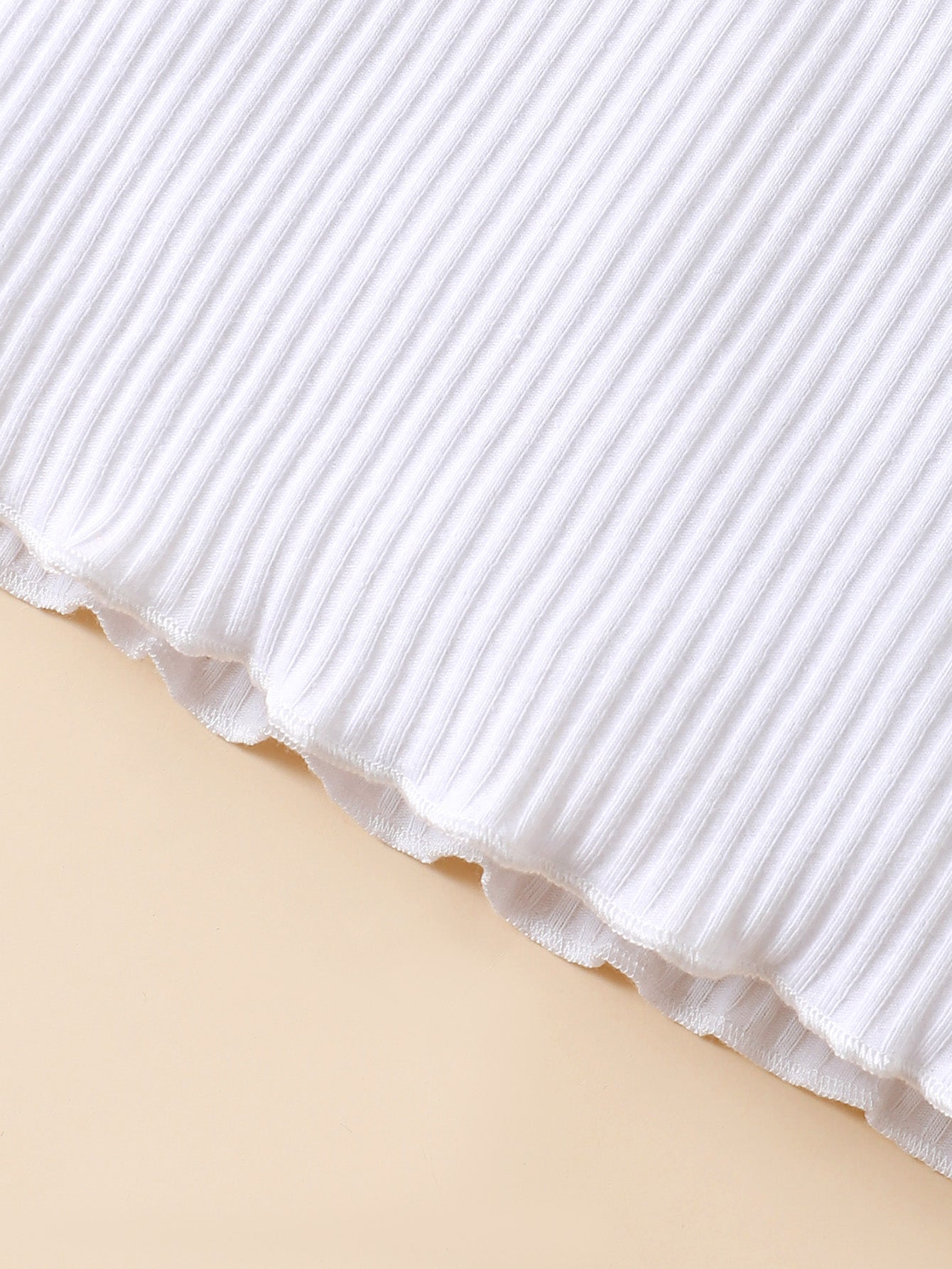 Girls Ribbed Notched Tank and Bow Detail Shorts Set