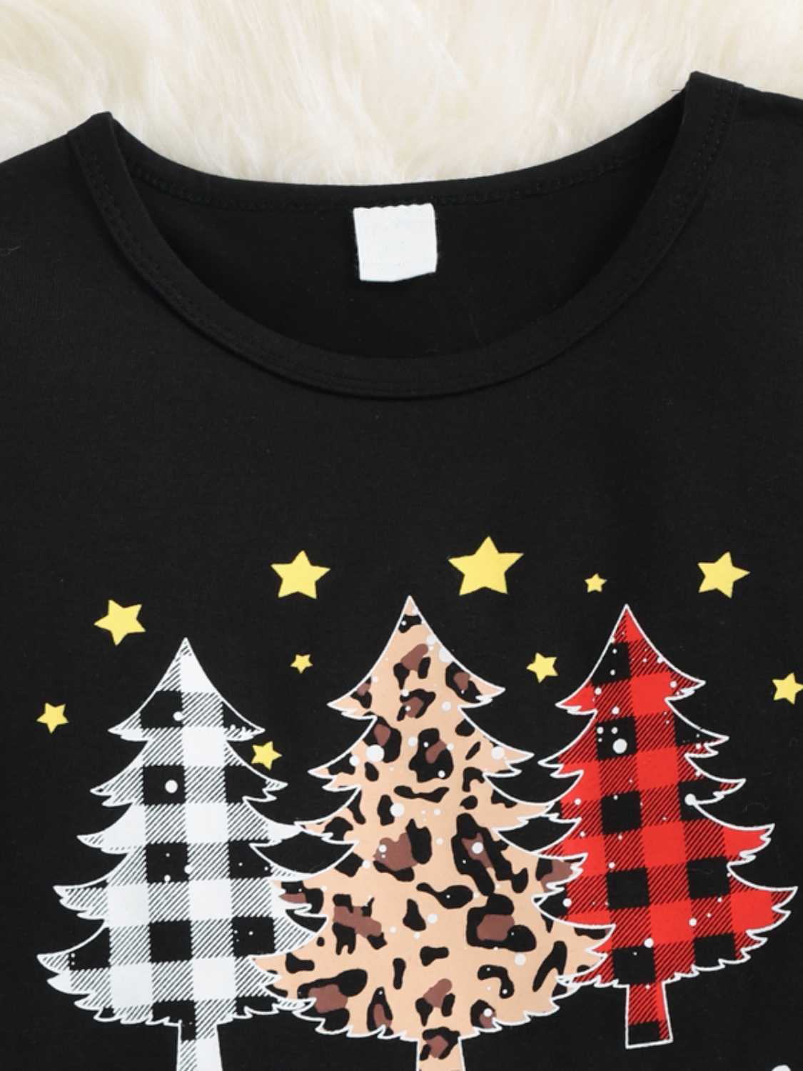 Graphic Top and Plaid Flare Pants Set