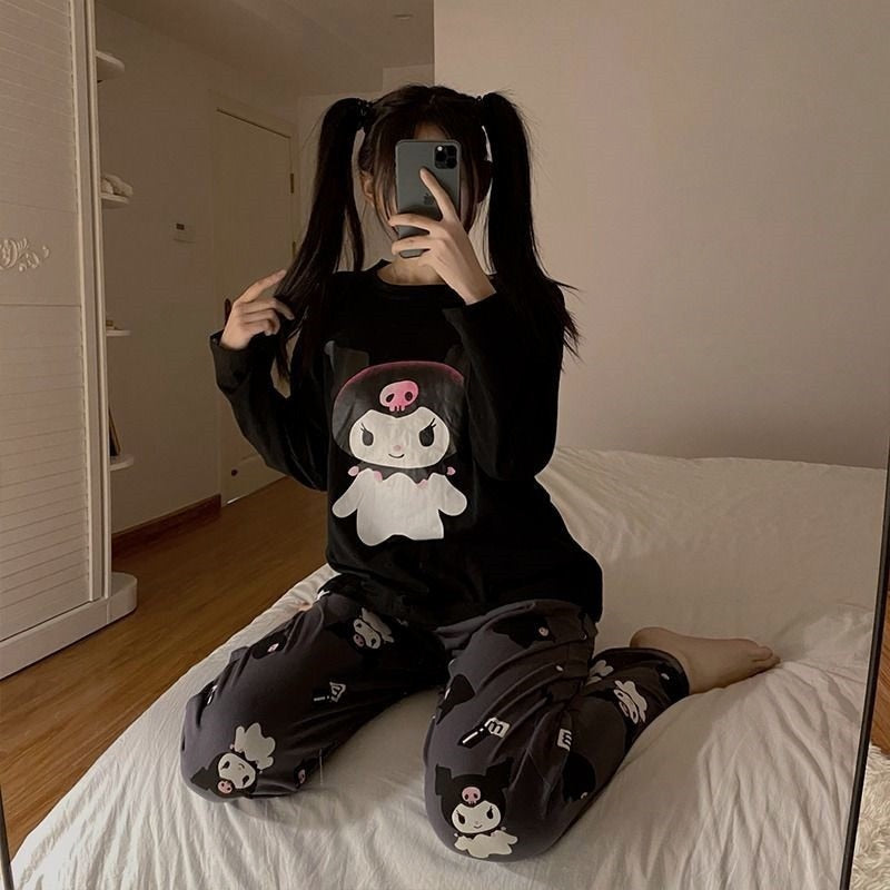 Kawaii Sanrio Kuromi New Autumn Kawaii Two Piece Pajamas Soft Home Wear Outgoing Girl Christmas Birthday Gift Clothes