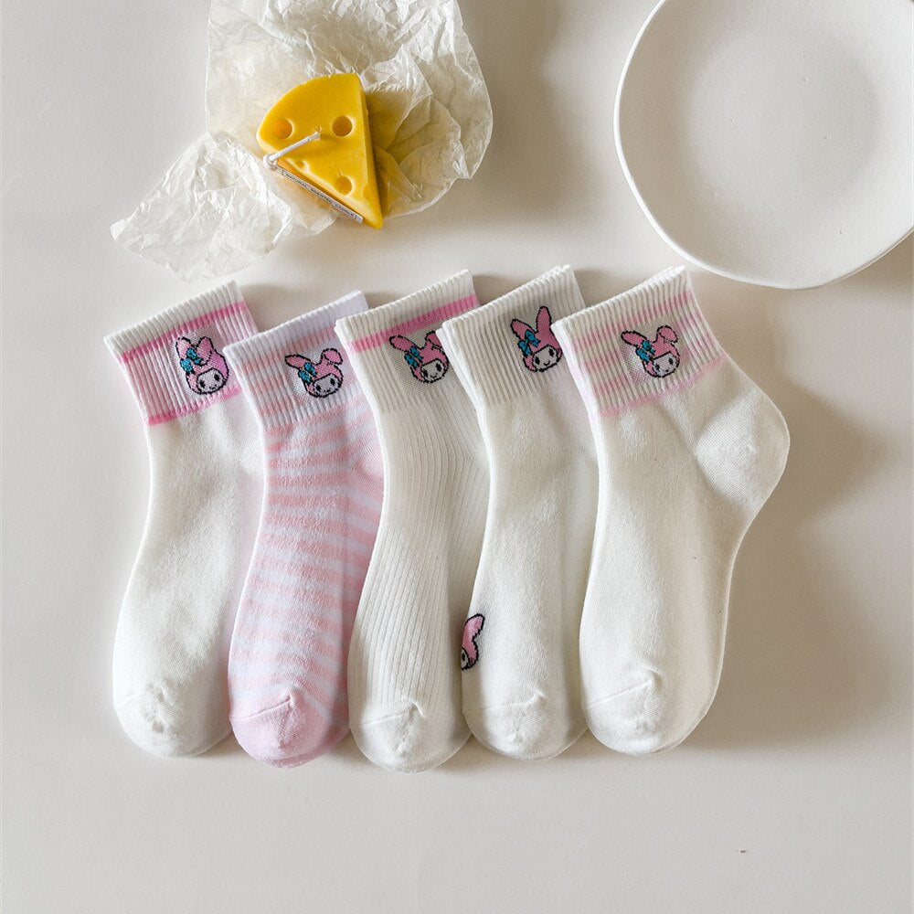 Kawaii Sanrio Women's Socks Cartoon Hello Kitty My Melody Harajuku Mid-tube Cotton Sports Breathable Student Sock Christmas Gift