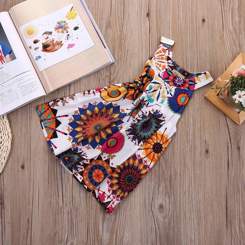 Kids Little Girls Dresses Toddler Printed Flower Baby Girl Sleeveless Party Tutu Summer Mini Dress 3 To 7 Years