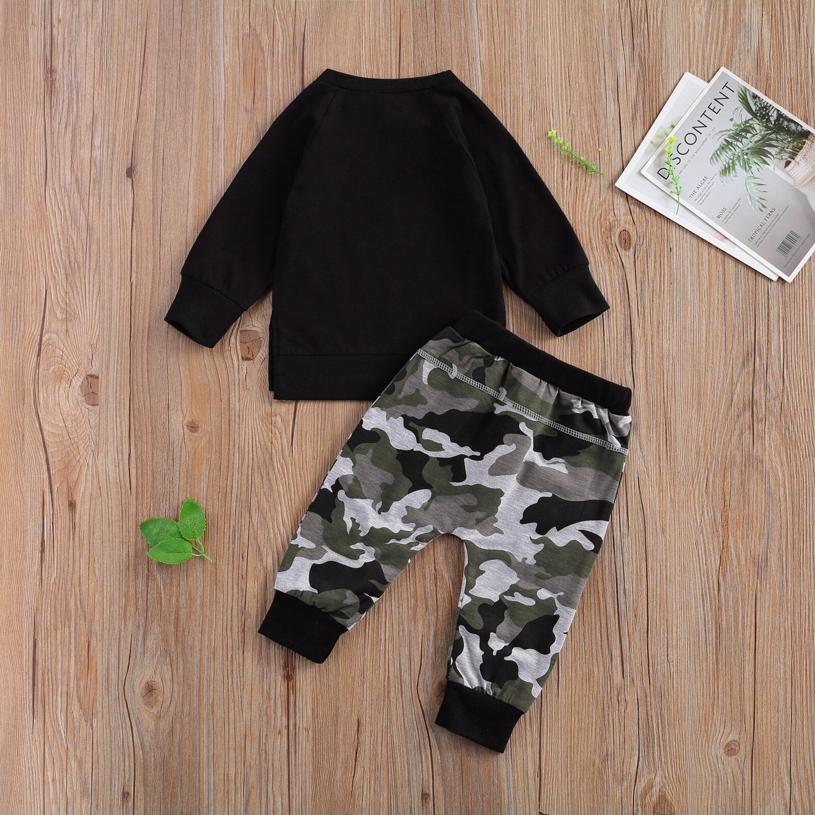 lioraitiin 0-24M Newborn Baby Boys 2-piece Outfit Set Long Sleeve Round Neck Tops+Camouflage Pants Set