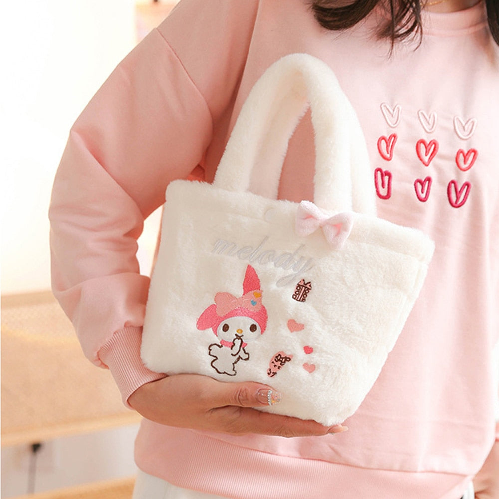 Sanrio Plush Bag Kuromi Handbag My Melody Cinnamoroll Storage Shoulder Hello Kitty Makeup Bag Women Plushie Backpack Gift Girl
