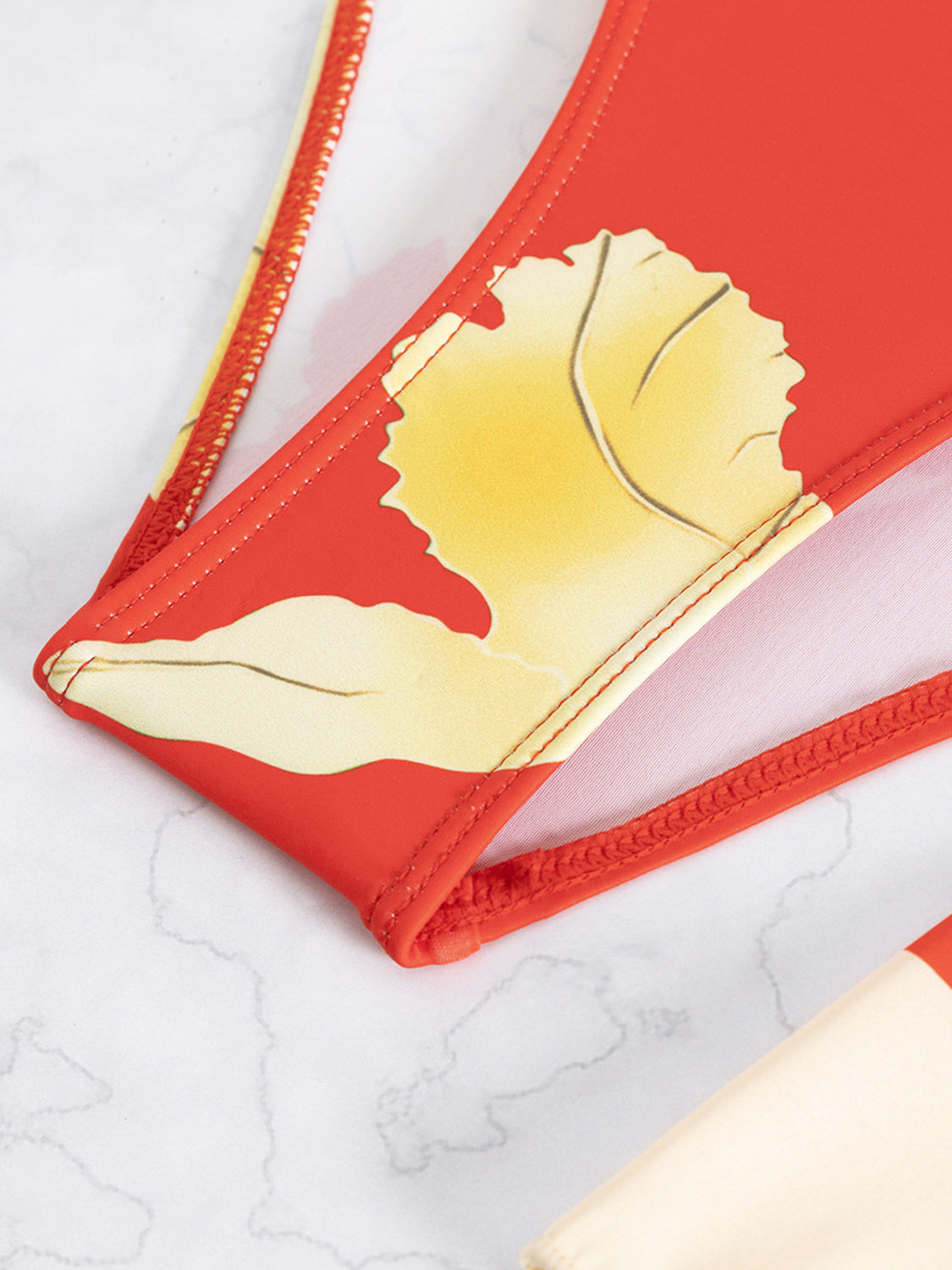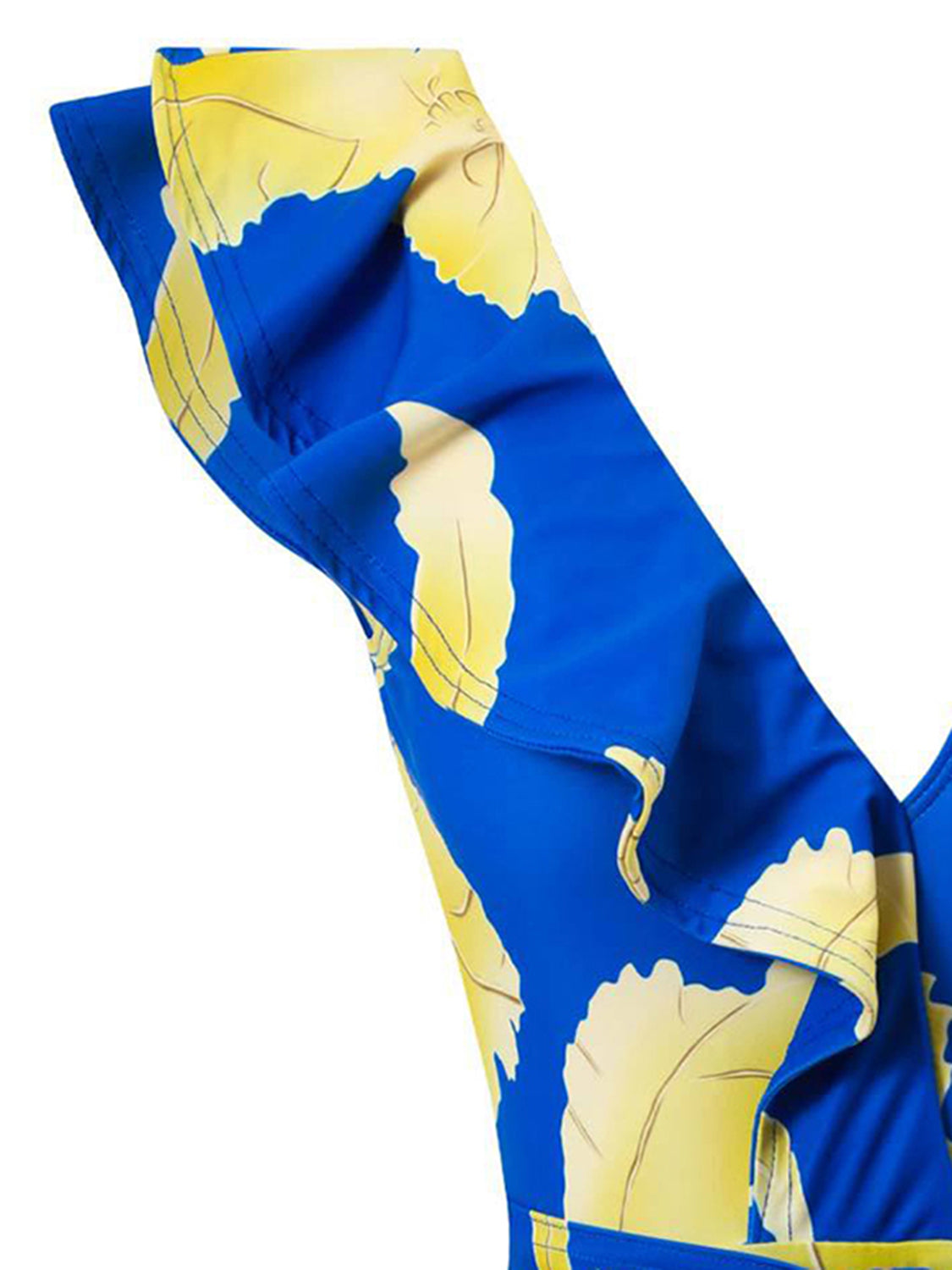 Tied Printed V-Neck Sleeveless One-Piece Swimwear