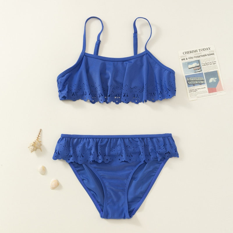 TUONXYE Girls Swimwear Swimsuits Outfits Off Shoulder Crop Top Floral Print Briefs Set Children Bikini Beachwear Bathing Suits