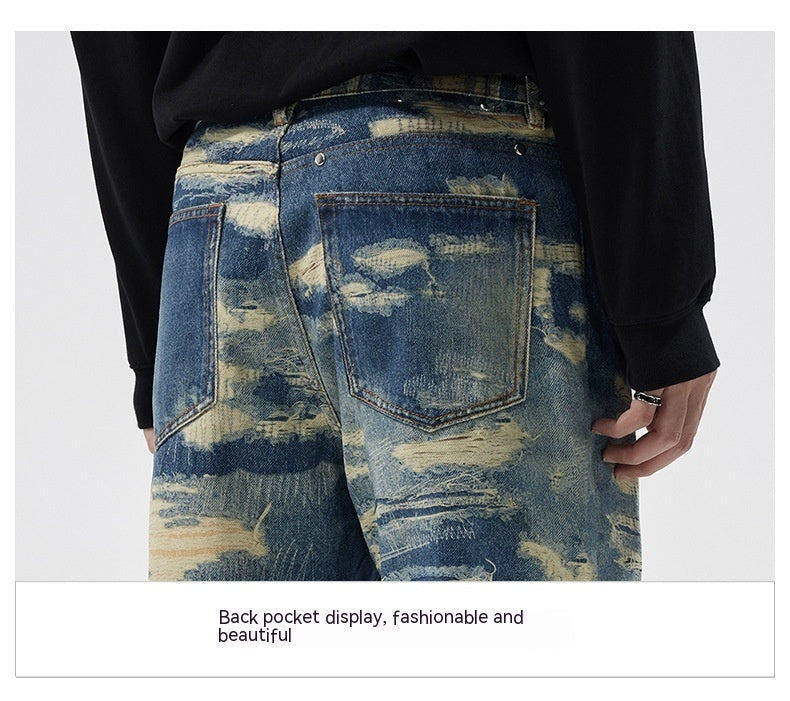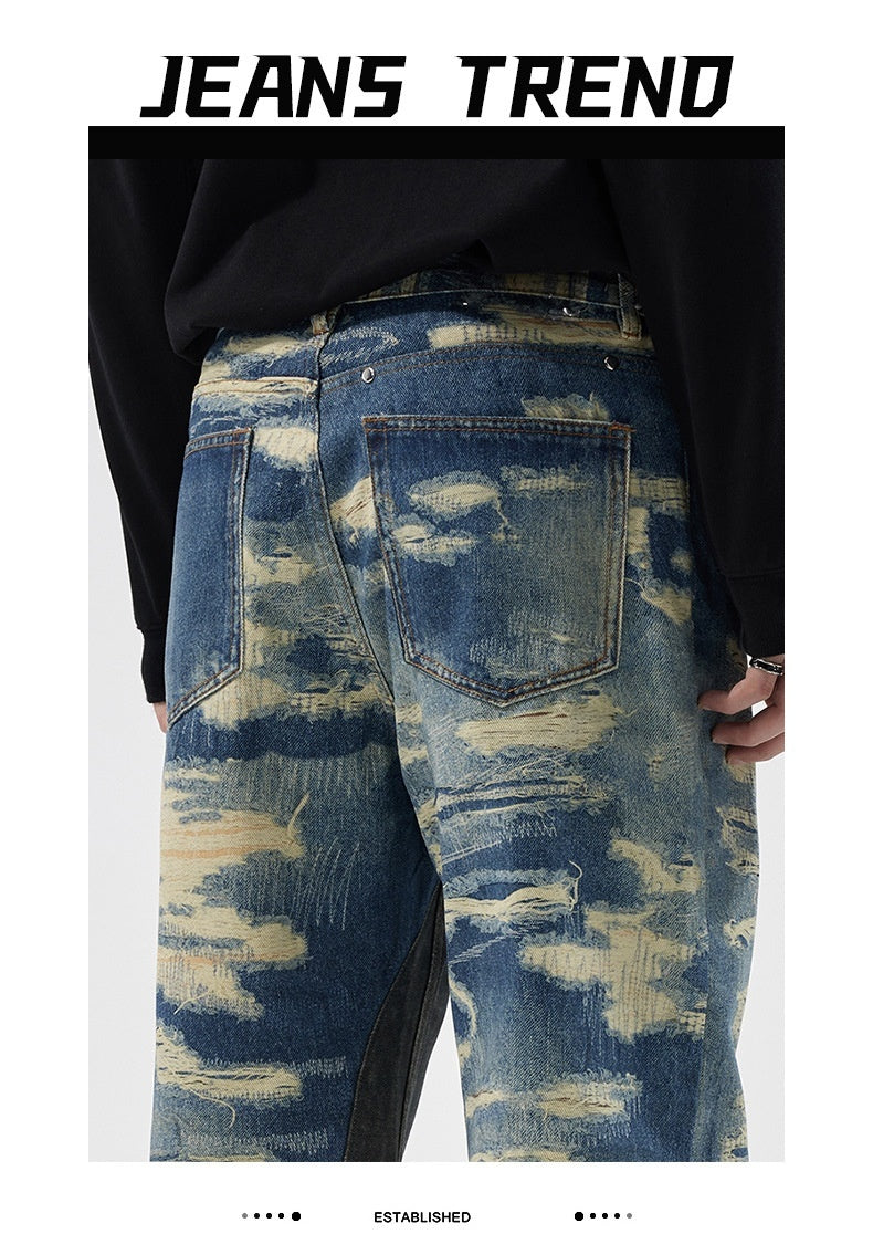 Washed Printed Straight Personality Street Fashionable Denim Trousers