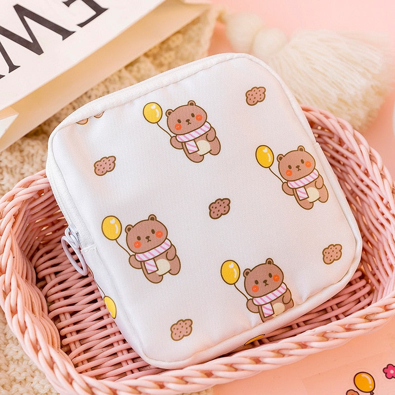 Women Girls Kawaii Cosmetic Makeup Tampon Bear Napkin Pouch Storage Bag Coin Purse Sanitary Pads Bag Mini Data Cables Organizer